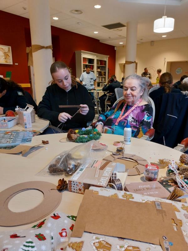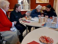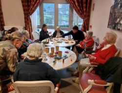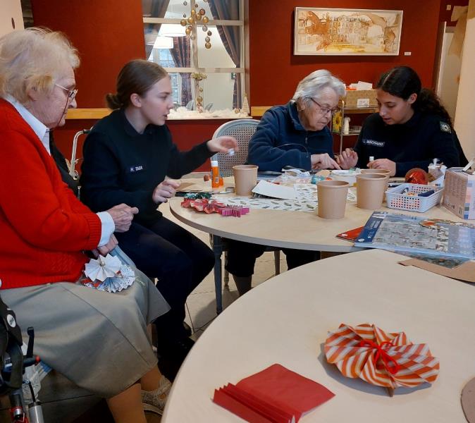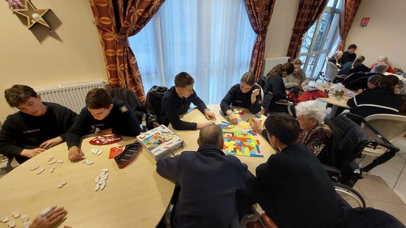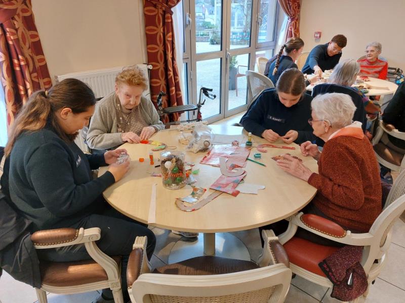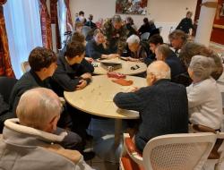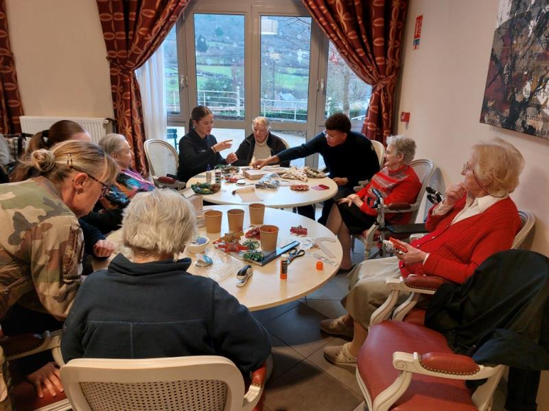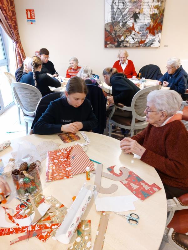 3 groupes se sont formés assez rapidement : atelier bricolage-décorations de Noël, jeux de société, et papotages d’une table à l’autre.
