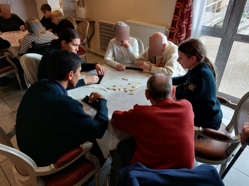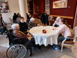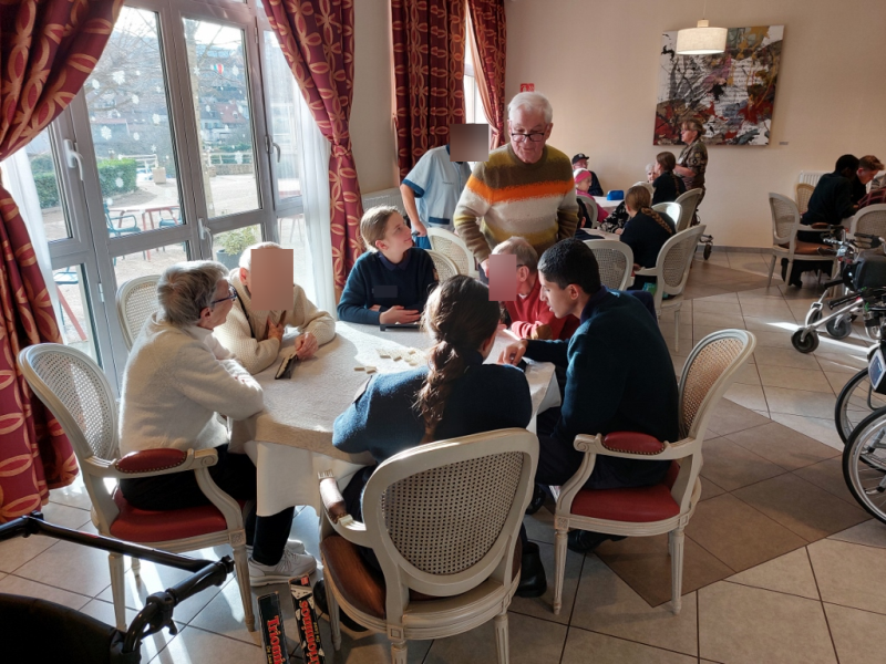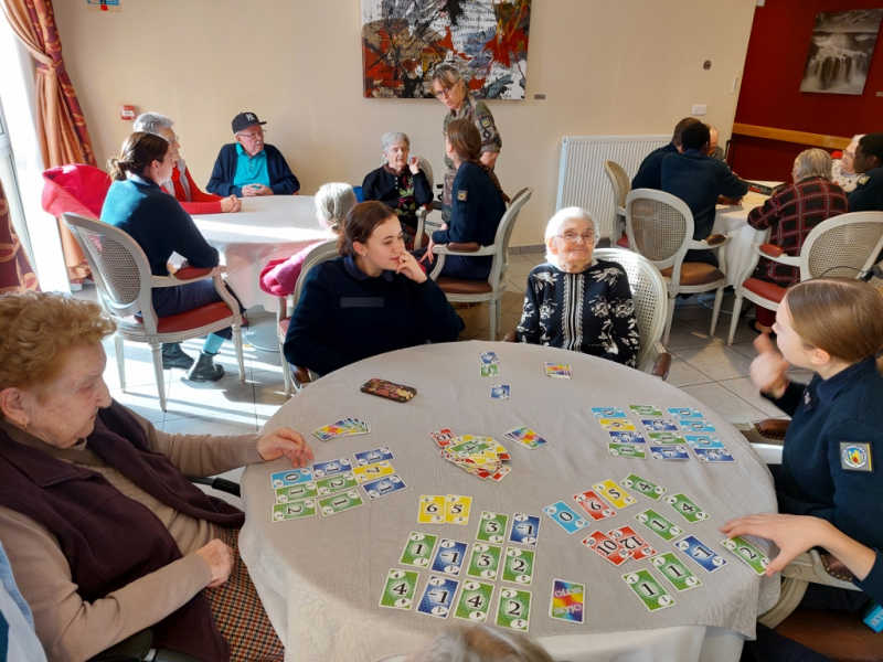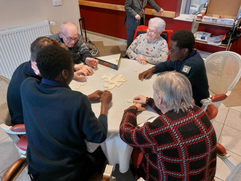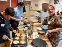 Les jeunes du Lycée Militaires sont toujours fidèles pour venir rencontrer les résidents chaque mercredi : histoire de varier les plaisirs, nous avons profité de la proximité de la fête de la chandeleur pour faire un goûter de crêpes. Pendant que les uns s'occupaient de la cuisson, les autres faisaient des jeux de société.