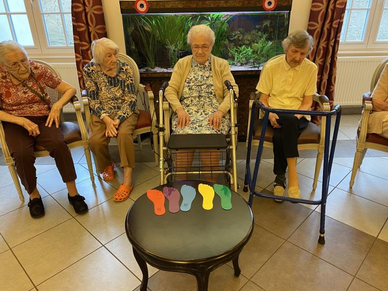 Les mains sont cachées, il faut mémoriser les couleurs de chaque pieds, puis repositionner sur les mains ... Quelle histoire ! Un beau moment de plaisir