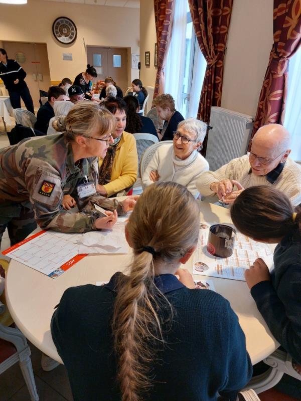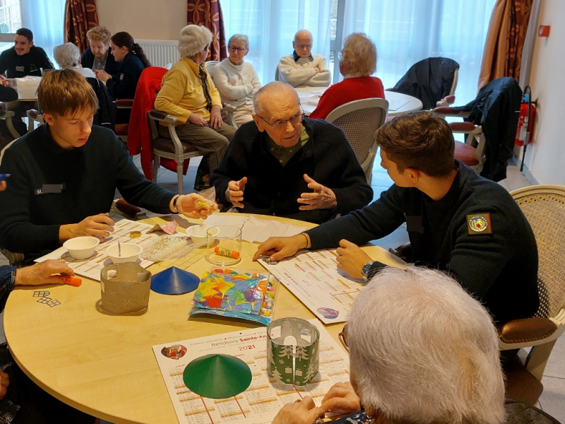 Dans une atmosphère chaleureuse et joyeuse, les élèves du lycée militaire partagent des moments privilégiés avec nos résidents en réalisant avec eux des décorations de Noël. Cette activité intergénérationnelle permet de tisser de beaux liens fondés sur l’écoute, la patience et la convivialité.