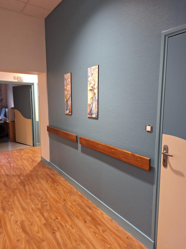 Nous avons également en ce moment l'installation de rails de transfert, de sorte que la presque totalité des chambres "équipables" le seront pour le confort des résidents mais aussi afin de limiter les troubles musculo-squelettiques pour nos salariés (c'est effectivement un métier très impactant physiquement). la CARSAT est d'ailleurs un vrai soutien financier pour ce projet