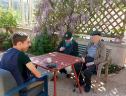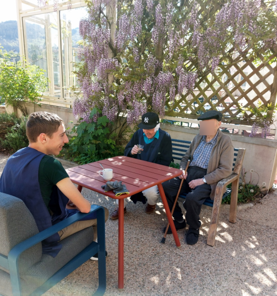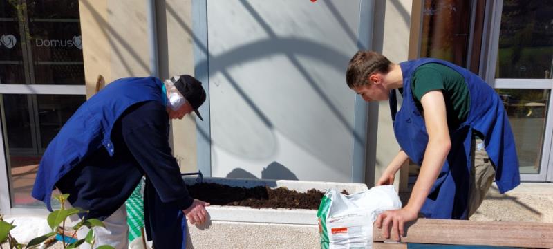 Au départ il y avait des volontaires chez les résidents. Et puis finalement quand il a fallu mettre les mains dans la terre il y avait beaucoup moins de monde. Plus qu'un résident à vrai dire, mais il était motivé d'autant qu'il a travaillé en binôme avec Djino, jeune homme de 15 ans qui vient découvrir le métier d'animateur-jardinier.
