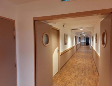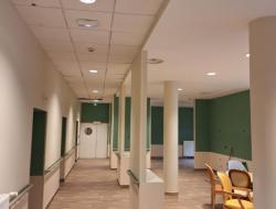 L’espace de vie de l’Unité de Vie Protégée a été entièrement repensé pour offrir aux résidents un cadre à la fois sécurisant, chaleureux et stimulant. Les espaces sont adaptés aux besoins spécifiques des personnes atteintes de troubles cognitifs : circulation facilitée, couleurs apaisantes et repères visuels pour limiter la désorientation. Des espaces identifiés, salon, activité, restaurant, de beaux espaces!