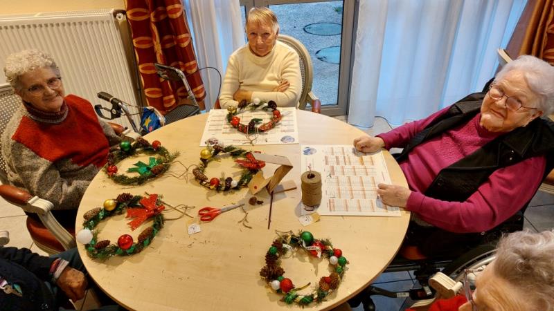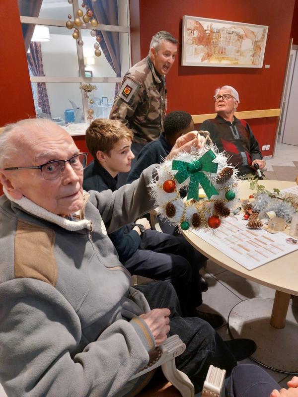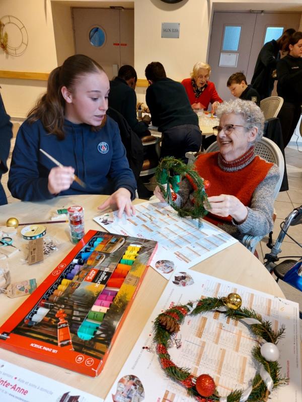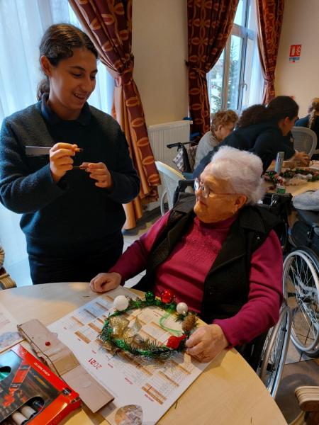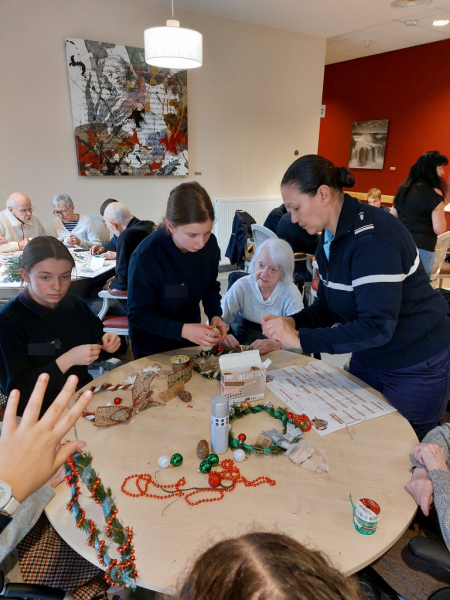 Les élèves, volontaires et enthousiastes, ont aidé les résidents à créer couronnes, cartes de vœux et petites décorations artisanales.