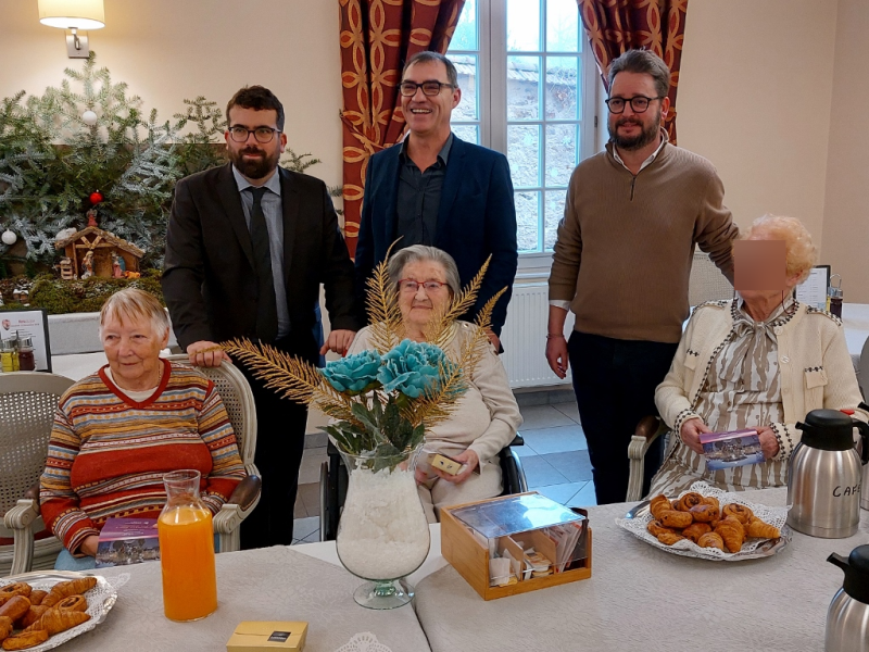 À l’occasion des festivités de Noël, le maire d'Autun, accompagné d'un conseiller municipal, est venu à la résidence vendredi matin afin de partager un moment convivial avec les résidents. Accueillis avec sourire et émotion, les élus ont pris le temps d’échanger avec chacun, évoquant souvenirs, traditions et projets de la commune.